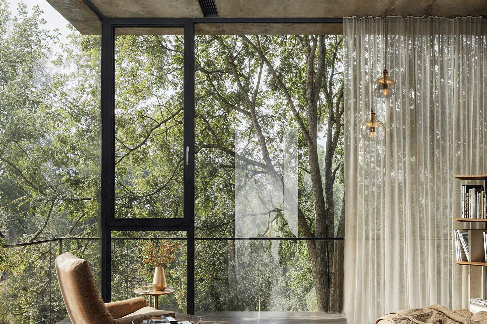 框扇室內外平齊設計,線條簡約利落,立面效果簡潔平整。窗扇開啟狀態(tài),開啟扇與建筑外立面平行。